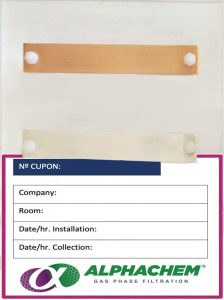Para ello, se exponen los cupones en la sala a controlar, por un plazo de 30 días, tras lo cual se retiran y analizan siguiendo el método desarrollado por los laboratorios Bell Telephone Systems y Battelle Columbus Laboratories, para determinar los Angstroms de corrosión acumulados y compararlos con los estándares de la ISA.